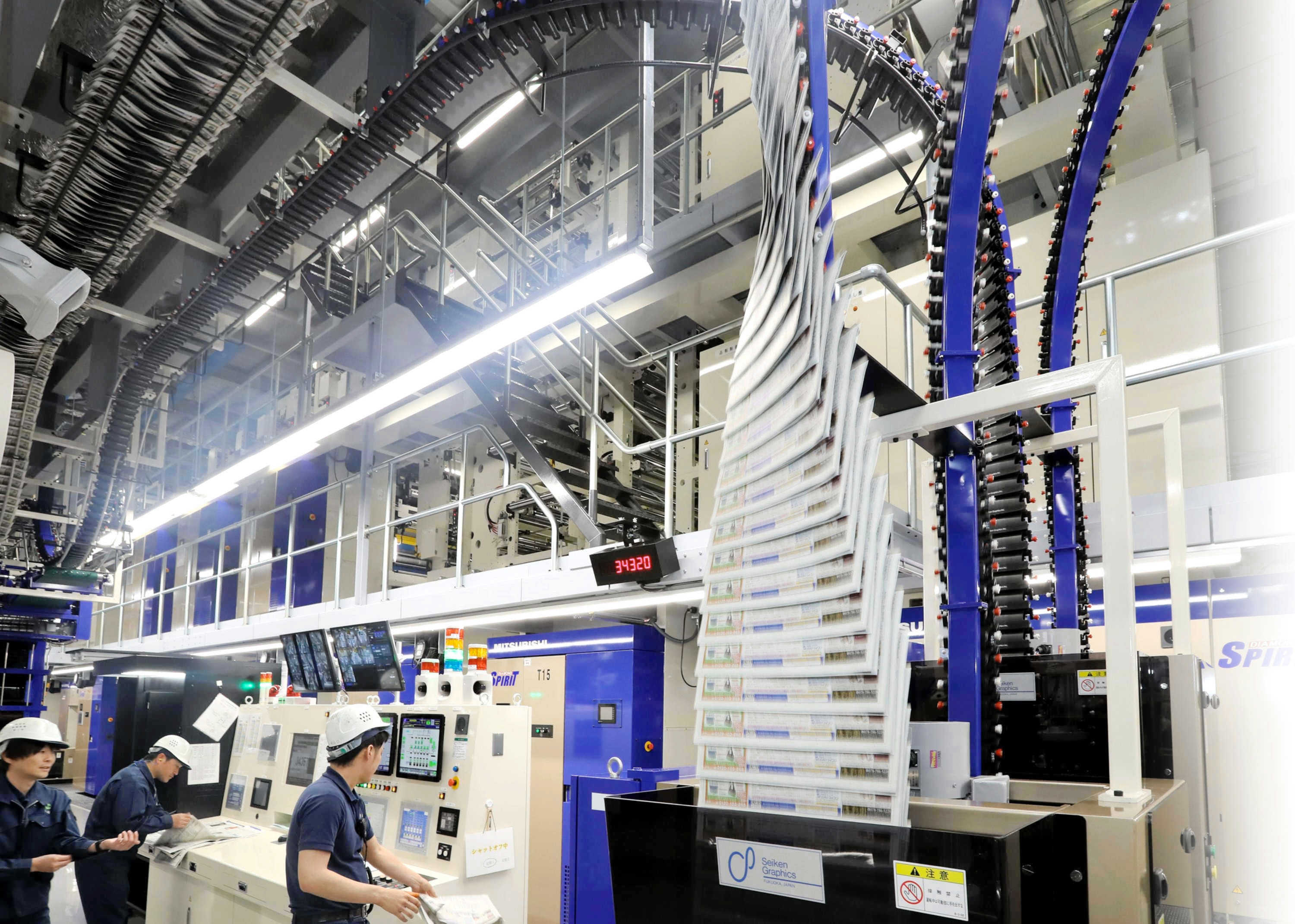 出来上がった新聞のデータを印刷し、パッキング、出荷をする仕事です。予測できない事件、事故が起こった場合は、データの完成が遅くなることもあります。