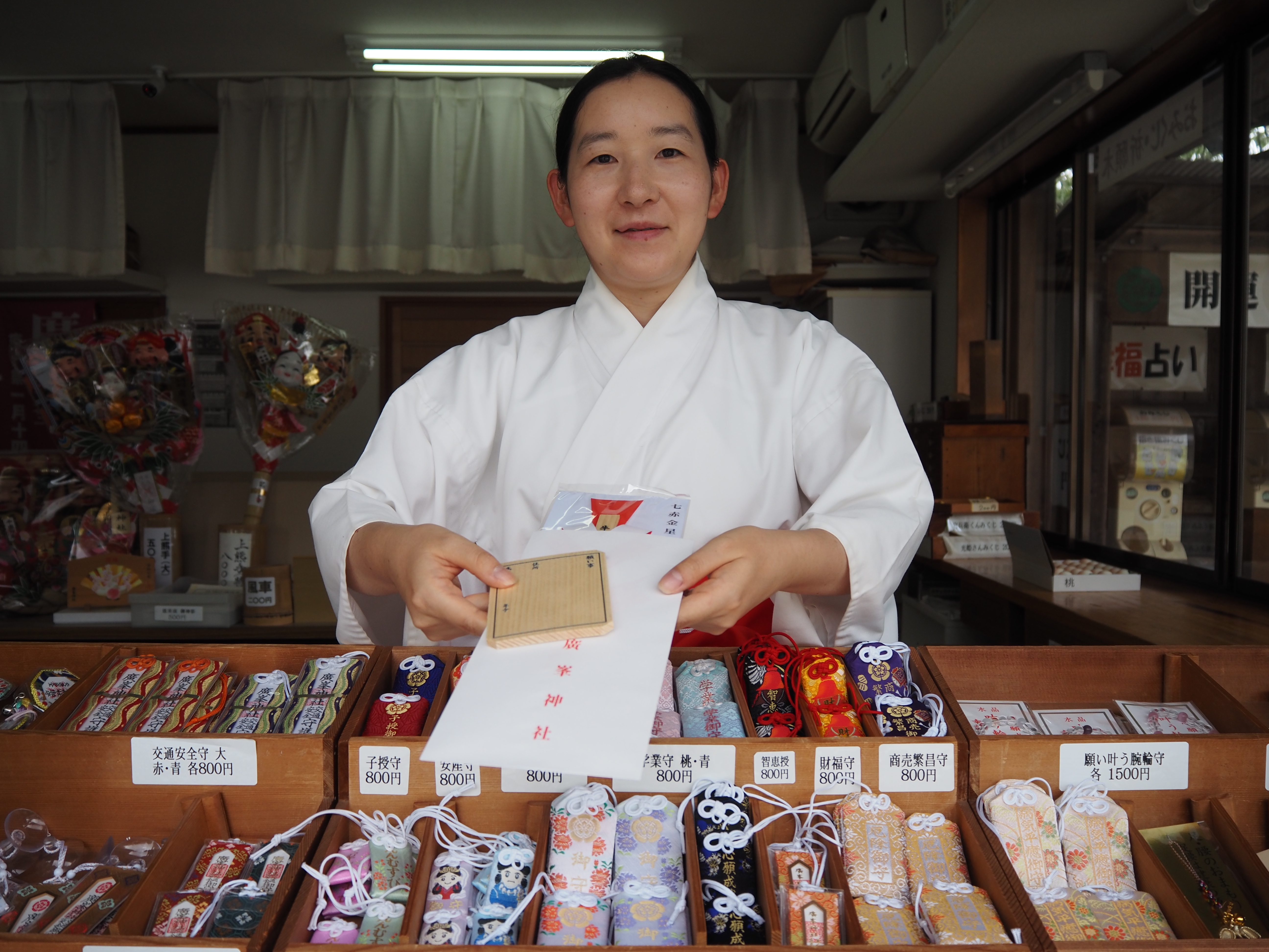 参拝者のご希望によりお札やお守りをお渡しします。その際には、神社の礼儀作法や言葉づかいを守り、気持ちよく参拝いただけるよう気をつけています。