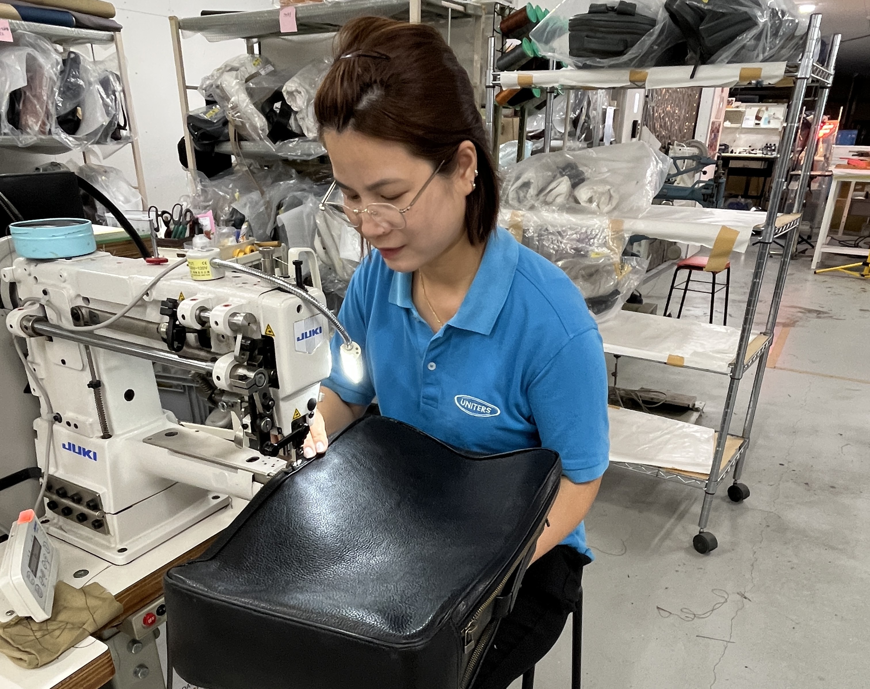 ファスナーや持ち手の交換、ほつれなど、細部にわたって縫製修理をおこないます。ベテランの縫製職人がひと針ずつていねいに仕上げていきます。