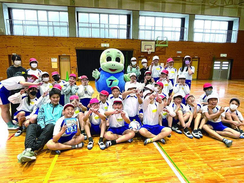 ホームタウン活動として幼稚園や小学校に出向き、サッカー教室などでスポーツの楽しさを伝えています。オフシーズンには選手が参加することもあります。写真提供:OITAF.C.