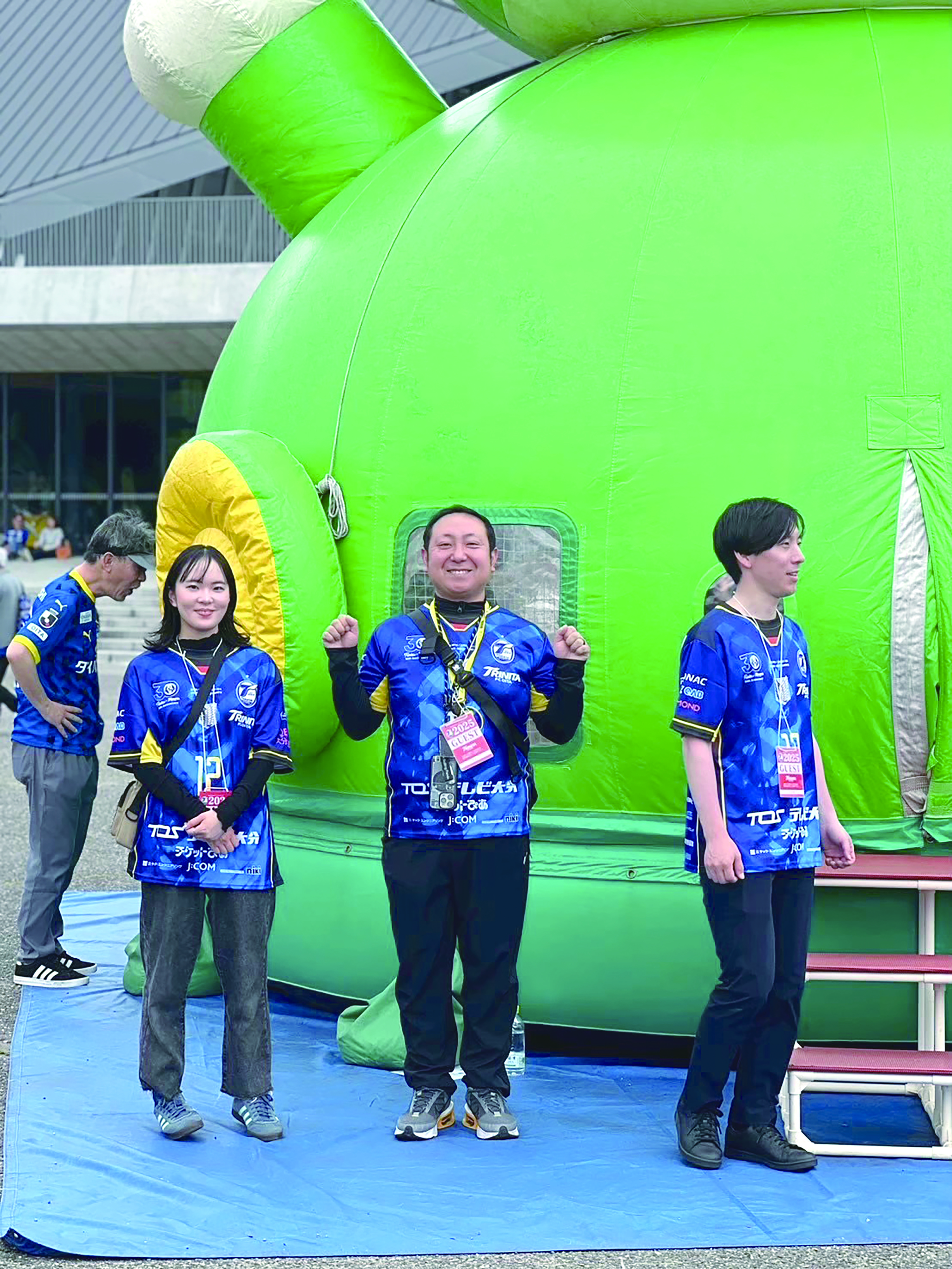テレビ大分がひらくイベントを考えて、実際に運営をします。イベントに参加してくれた大分県の人たちが楽しくすごせるように、SNSやCM、ポスターなどでお知らせをおこない、多くの人に知ってもらう工夫をしています。イベントの企画を考える時には、みんなでアイデアを出し合います。意見がたくさん出ると、とてもワクワクしますし、イベントが無事におわった時には、大きなやりがいを感じます。
