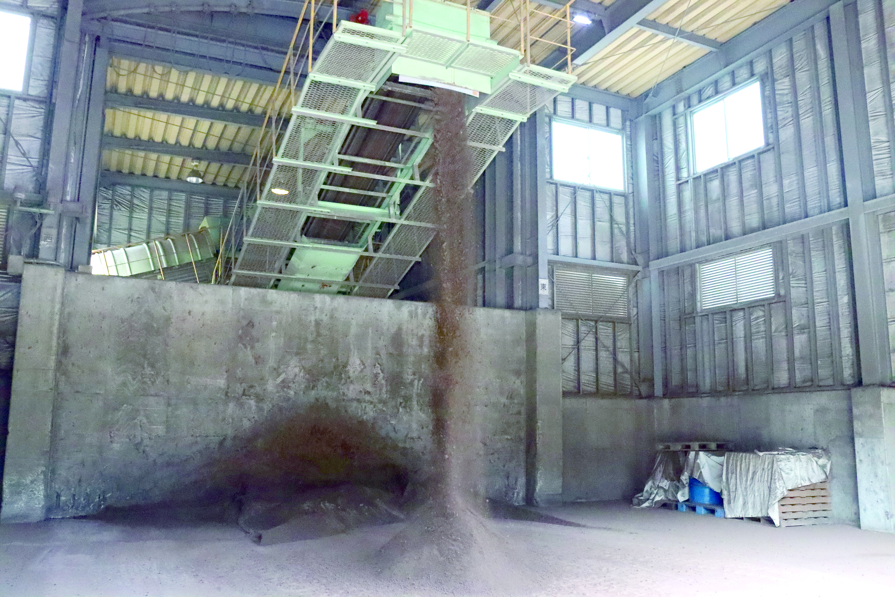 回収した焼却灰は、薬品と一緒にセメントなどにまぜて土壌改良材としてリサイクルします。多い時で一日60トンもの土壌改良材を製造します。